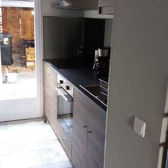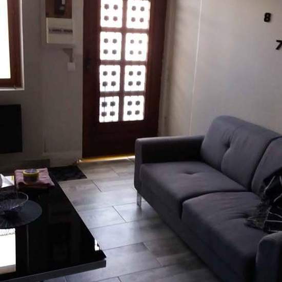 Maison à louer à partir du 1er janvier. Petite maison de 50 m². Chauffage au radiateur. Une pièce principale au rez-de-chaussée, une petite cuisine équipée. Douche à l'italienne. À l'étage, une grande chambre.