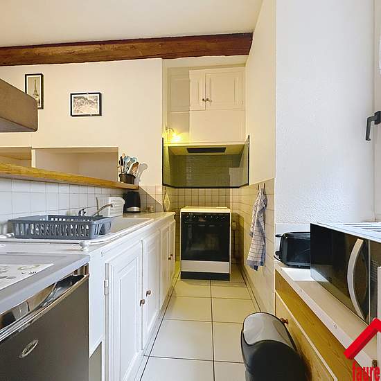 EXCLUSIVITE FAUREIMMO.FR/ Charmante maison meublée en pierre située sur la commune de Donzenac, comprenant une entrée, un salon/séjour ouvert sur une cuisine, une chambre, une salle d'eau, un WC, une buanderie, une cave et une terrasse.