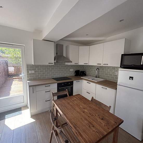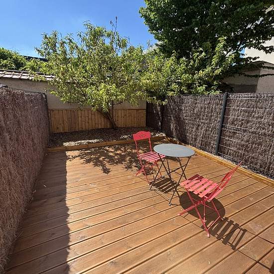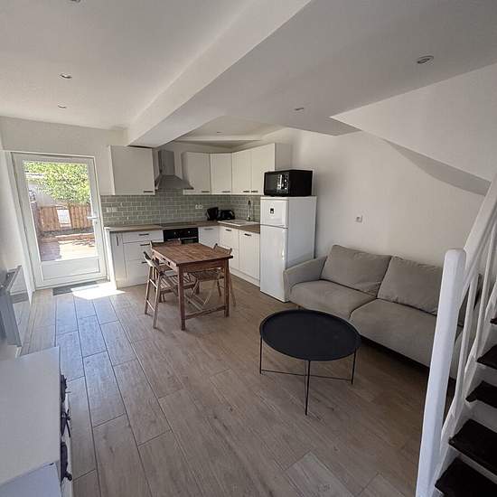 EVREUX - PROCHE CENTRE VILLE Dans une impasse, appartement indépendant entièrement refait à neuf, meublé et comprenant : Séjour (canapé et table basse) avec cuisine entièrement aménagée et équipée (four, lave-vaisselle, frigo/congel, plaque, hotte et micro-ondes) donnant sur une terrasse en bois 24m² exposée sud-ouest. A l'étage : chambre (lit + armoire) et salle d'eau avec wc et machine à laver. Garage extérieur indépendant de 18m². Loyer 660 € + 20 € de charges (provision pour l'eau) = 680 € / mois Libre de suite Honoraires de 360 € TTC à ...