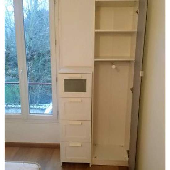 Duplex dans une maison de caractère au calme dans quartier résidentiel de Fontainebleau. Au rez de chaussée : Entrée, Buanderie, cuisine ouverte avec bar donnant sur pièce principale avec canapé convertible. A l'étage : WC séparé, salle de bain avec douche, chambre avec penderie et commode. Vue sur les jardins arborés. Jardin partagé à l'avant de la maison. Possibilité de garer un vélo.