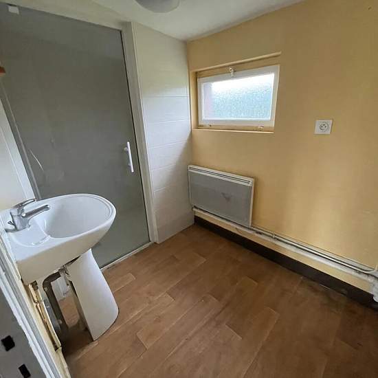 Cette maison comprend cuisine, séjour , salon, 1 chambre, salle d'eau et WC séparé. Terrain avec un bâtiment.