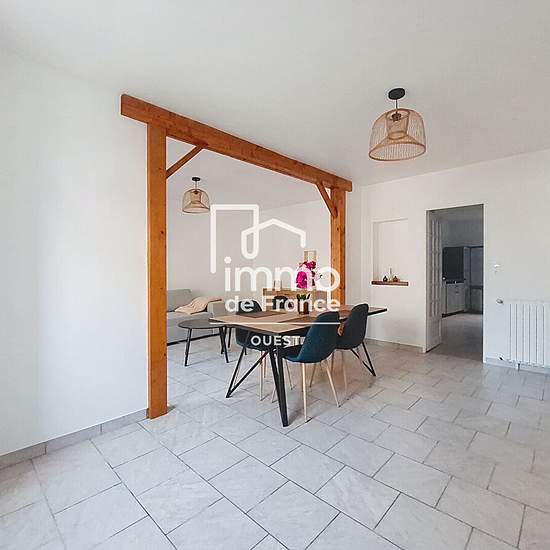013-06L- E9173. Maison mitoyenne, centre bourg d'Izé, comprenant au rez-de-chaussée, un salon-séjour, une cuisine aménagée et équipée, une buanderie. A l'étage, 2 chambres, une salle d'eau avec WC, un grenier. Une courette en extérieur. Disponible de suite Pour tout renseignement, veuillez contacter l'agence IMMO DE FRANCE OUEST EVRON au