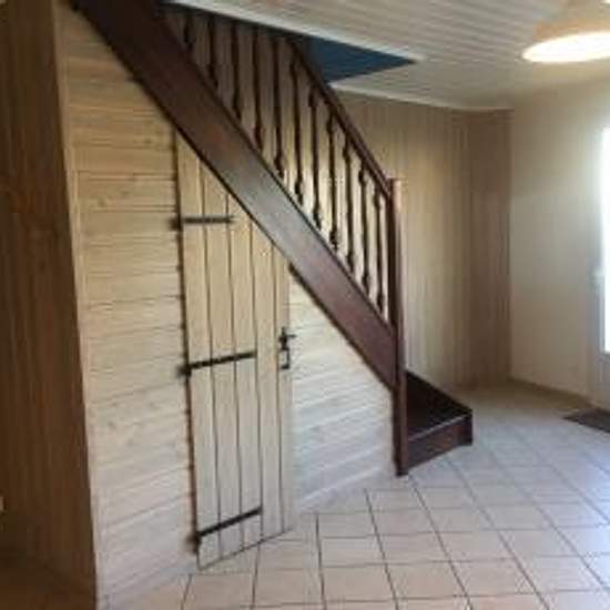 Maison située dans le centre bourg des Lucs sur Boulogne, comprenant : Rez de chaussée : Entrée, salon/séjour avec une cuisine aménagée et équipée, buanderie, wc Etage : 2 chambres, une salle d'eau + terrasse située à l'étage. ! BON A SAVOIR ! - Loyer : 600 EUR - Caution : 600EUR - Frais d'agence : 540 EUR - Proche de toutes commodités, services de proximité... - Pas de garage, place de parking à proximité - Disponible début janvier ! NOUS DEMANDONS ! - 3 derniers bulletins de salaire + contrat de travail - Justificatif + dernier avis d'impo...