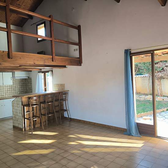 Agence Bellissimmo Narbonne vous présente : Narbonne Ouest : Maison de 50m² libre sur 2 faces, composée d'un séjour donnant sur cuisine aménagée, salle d'eau, WC, chambre sur mezzanine, garage sur 183m² de terrain clos et arboré .