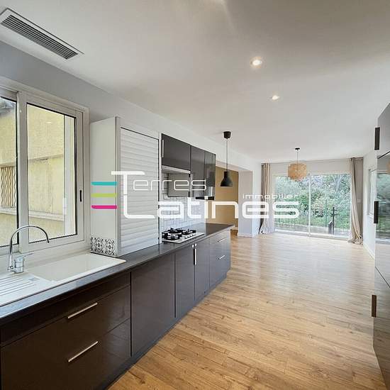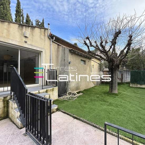 Nîmes secteur Tour Magne, maison de plain-pied de type 4 comprenant séjour avec coin cuisine équipée, salle à manger, 2 chambres, dressing, salle d'eau avec WC, cellier, et un sous-sol composé de 2 caves et d'un atelier. La maison bénéficie d'un jardin clos avec piscine et de la climatisation. Dépôt de garantie : 1 210 €. Disponible actuellement. Honoraires charge locataire : 1 020 € TTC (dont honoraires état des lieux : 235 € TTC). Zone soumise à l'encadrement des loyers.