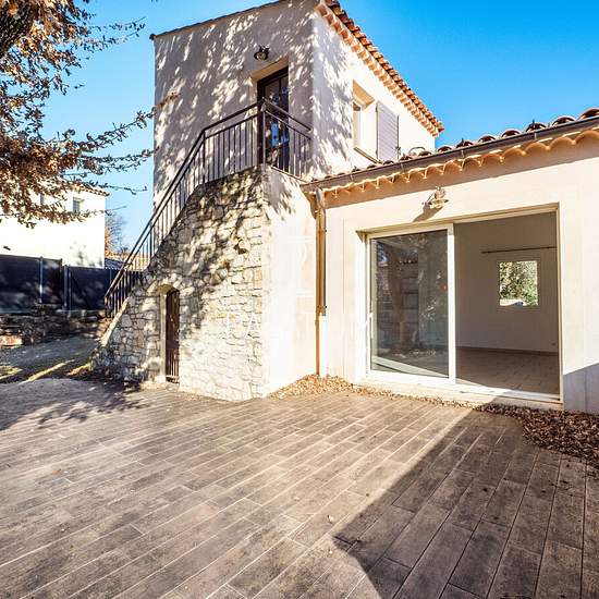 Laissez-vous séduire par cette adorable maison individuelle T2 de 50 m², idéalement située dans un quartier prisé, calme et proche de l’école de Pierrevert. Elle se compose, au rez-de-chaussée, d’une belle pièce de vie lumineuse avec cuisine américaine aménagée et entièrement équipée, parfaite pour des moments conviviaux. À l’étage, vous découvrirez une chambre cosy donnant accès à une petite terrasse, une salle d’eau avec WC, ainsi qu’une mezzanine en sous-pente, idéale pour un espace bureau, rangement ou couchage d’appoint. À l’extérieur, ...