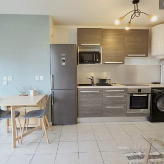 Très agréable logement sans aucun vis-à-vis de 40 m² avec 1 chambre et grande terrasse Situé au cœur du village de Rillieux-La-Pape, proche de nombreux commerces : Banques, Supérette, Pharmacie, Tabac, Boulangerie, Boucherie, Fleuriste etc….. Au premier étage d'un immeuble récent (2012) , sécurisé par interphone et visiophone Stationnement très facile et gratuit autour de l'immeuble Entrée avec porte manteau, banc, meuble à chaussures Salon lumineux avec canapé-lit, table basse, fauteuil, pouf, TV (connexion Internet Fibre optique) Cuisine a...
