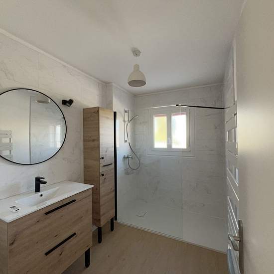 Très belle maison de plain-pied sur 4 faces avec préau, entourée d'un jardin clos d'environ 400m² avec des oliviers et des arbres fruitiers. Exposée sud, elle fait face aux Albères et se compose d'une entrée, d'un séjour climatisé avec des grandes portes fenêtres ouvrant sur le préau. D'une cuisine meublée avec hotte et un accès à une terrasse couverte équipée d'un barbecue, un WC indépendant avec lave main, d'une salle de douche meublée avec un sèche serviette électrique. Deux belles chambres avec des grands placards. Toutes les pièces arri...