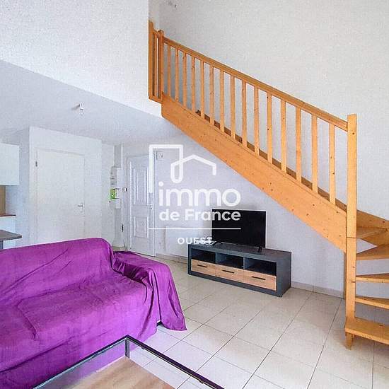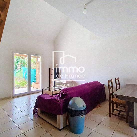 M9343. SAINT FRAIMBAULT DE PRIERES, maison meublée située dans une résidence calme, avec un cellier et un emplacement de parking extérieur comprenant : au RDC, séjour, cuisine ouverte aménagée et équipée, dégagement avec placard, WC; à l'étage, une chambre avec placard et une salle de bains ouverte. Libre de suite Pour tout renseignement, veuillez contacter l'agence IMMO DE FRANCE OUEST MAYENNE au .