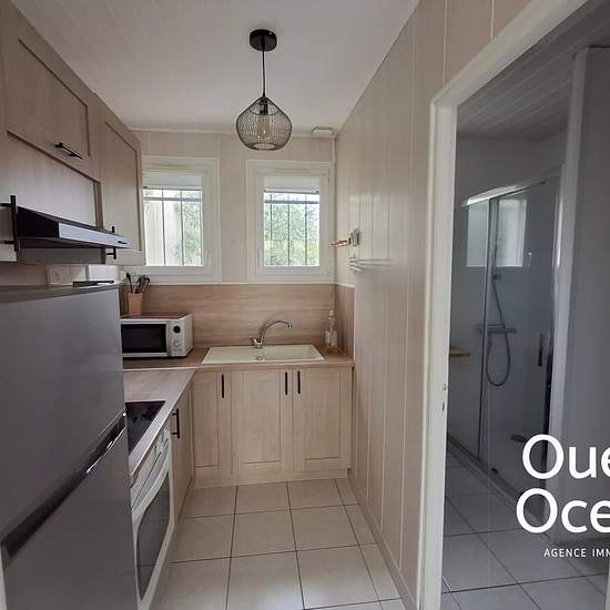 Votre agence Ouest Océan ,vous accueille téléphoniquement du lundi au vendredi ,de 8h30 à 18h.Nous vous proposons de visiter cette maison en location meublée située sur la quartier de la Guittière. Elle est composée d'une pièce de vie avec coin TV, une cuisine meublée et équipée, salle de douche et WC, une chambre et une véranda. le tout sur un terrain d'une surface d’environ 400m². Offre uniquement réservée aux bénéficiaires à la Garantie VISALE.