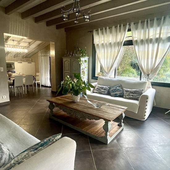 A LOUER en Bail mobilité (4 mois, jusqu'à fin mai 2026) . Dans le jolie village de Tresques, proche de Bagnols-sur-ceze, des site de Marcoule et Tricastin, à 35' d' Avignon et Nîmes. Magnifique maison T3/4 de 80 m2, entièrement meublée, au calme, dans une propriété privée. Au rez-de chaussée, on découvre un salon lumineux, une cuisine/salle-à-manger entièrement équipée, une salle d'eau avec WC, à l'étage on dispose de 2 grandes chambres communicantes ( 2 lits doubles, 1 lit simple) . A l'exterieur on dispose de 2 belles terrasses privatives,...