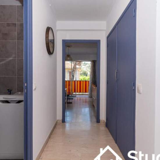 Ce 2 pièces entièrement rénové, idéal pour un couple, se situe à Golfe-Juan, à 2 pas de la mer, des commerces et des transports (bus, train). Il dispose d'un parking extérieur dédié sécurisé et se compose d'une chambre avec balcon, salon de jardin extérieur, un séjour / cuisine équipée (domino induction, four, micro-ondes, LV, cafetière à dosettes, etc.) avec un canapé 2 places confortable non transformable, une TV, une salle d'eau avec douche à l'italienne / WC suspendu et un lave-linge. Situé au 3ème étage avec ascenseur et climatisation d...