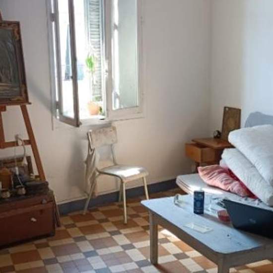 With balcony in a flat in a 1930 building 3th floor with no elevator. A large living room open to the kitchen. Close to thé city ce ter and gare Saint Charles. Common Toilet and bathroom with whasing machine and shower Updated on 09/12/2025 Mise à jour le 09/12/2025