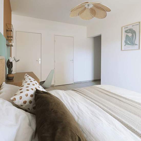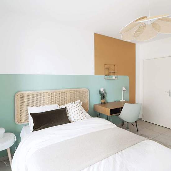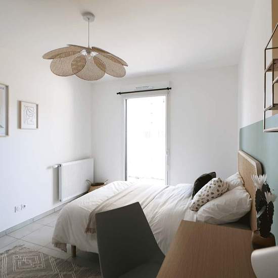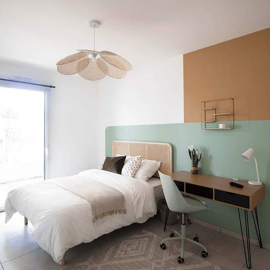 [FR] Découvrez cette grande chambre de 23 m² à louer dans un grand appartement de 100 m² à Villeurbanne, tout à côté de Lyon ! Tu trouveras toutes les commodités (supermarchés, salles de sport, restaurants, etc.) et le métro A à seulement 5 minutes à pied. Cette chambre à la décoration aux teintes beige et vert émeraude comporte un espace nuit, un espace de travail et une grande armoire. Cerise sur le gâteau : cette chambre bénéficie de sa salle de bain privative. En faisant appel à nos services, fini les frais annexes liés à votre logement....