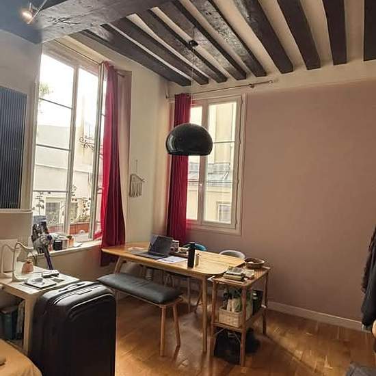 I have a room in a shared flat available for sublet for one month starting 28/1 in Le Marais. The flat has an additional flatmate, shared kitchen and bathroom. The room is like a large studio flat, with a king bed, its own living room and dining table space. Price per night - €80, negotiable depending on legnth of stay