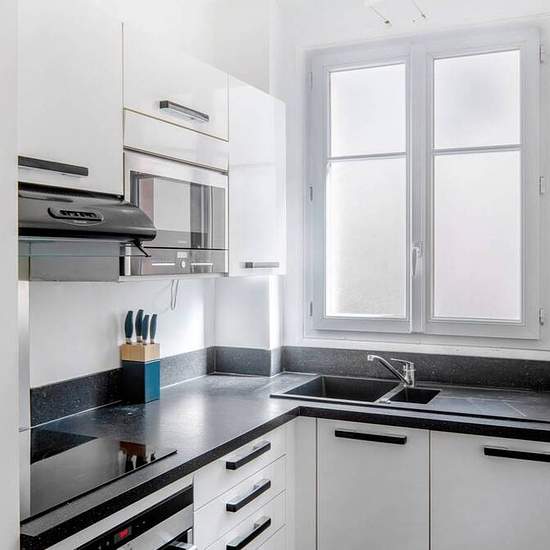 Furnished 3-bedroom apartment for rent in Paris. The property is on the 4th floor of a building with an elevator.