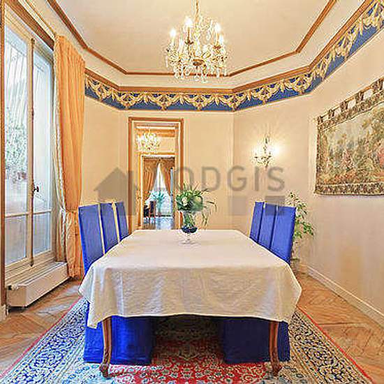This prestigious 162 m² apartment is located on Avenue Franklin D. Roosevelt, in a prestigious section of Paris 8th district. Composed of 5 rooms, including 3 bedrooms, this furnished apartment rental can accommodate up to 6 people. This apartment is located on the 2 floor (elevator available). It is also equipt with all you need for a nice trip including Vacuum cleaner, Cable, Iron, Internet included, Washing machine, Linen, table linens, dish towels, armored door, Dryer, etc. The apartment is accessible by Paris public transportation (Fran...