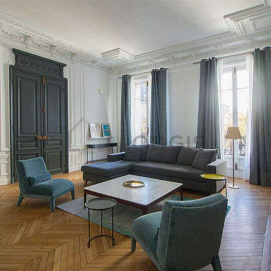 This prestigious 149 m² apartment is located on Rue De La Trémoille, in a prestigious section of the 8th district of Paris. Composed of 5 rooms, including 3 bedrooms, this furnished apartment rental can accommodate up to 6 people. This apartment is located on the 2nd floor - FR standard (elevator available). It is also equipped with all you need for a nice trip including Internet included, Vacuum cleaner, armored door, etc. The apartment is accessible by Paris public transportation (Alma - Marceau/M 9), and nearby you can find many businesse...