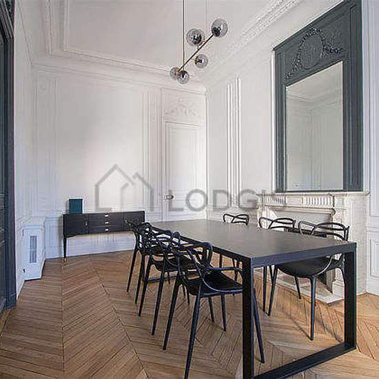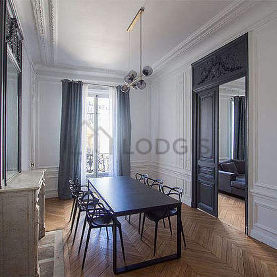 This prestigious 149 m² apartment is located on Rue De La Trémoille, in a prestigious section of the 8th district of Paris. Composed of 5 rooms, including 3 bedrooms, this furnished apartment rental can accommodate up to 6 people. This apartment is located on the 2nd floor - FR standard (elevator available). It is also equipped with all you need for a nice trip including Internet included, Vacuum cleaner, armored door, etc. The apartment is accessible by Paris public transportation (Alma - Marceau/M 9), and nearby you can find many businesse...