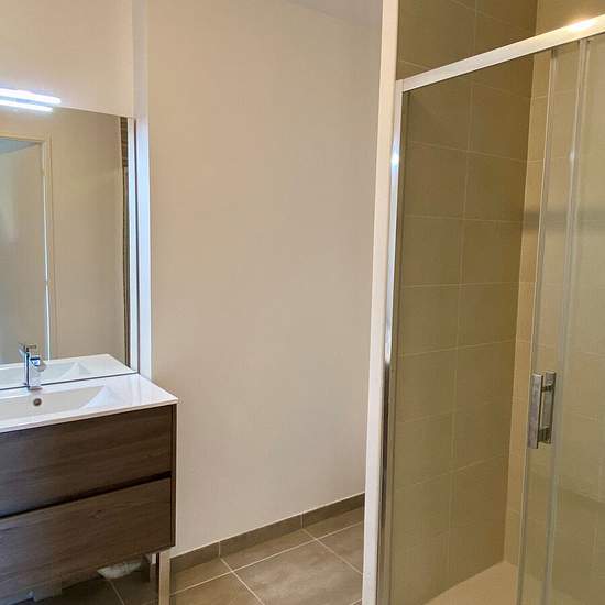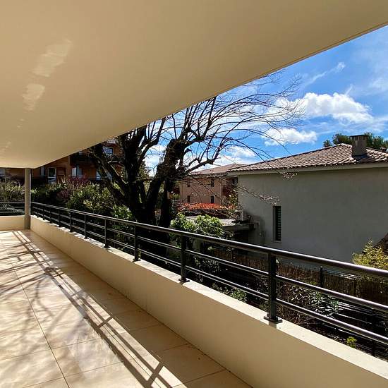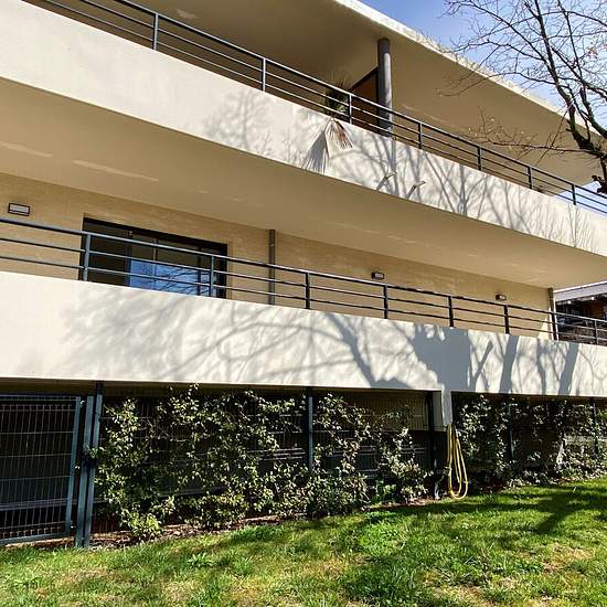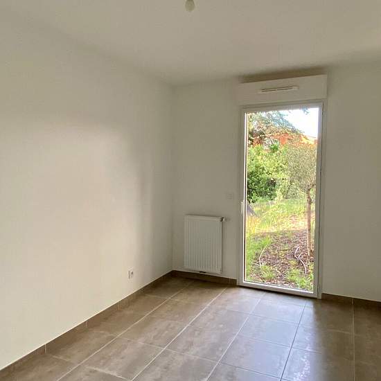 Un appartement de type 3 récent en rez-de-jardin de 66.45 m² comprenant un séjour avec placard mural et cuisine ouverte équipée (plaque de cuisson, four multifonctions, hotte aspirante, branchements lave-linge et lave-vaisselle), deux chambres avec placards, une salle d'eau, un WC séparé, ainsi que la jouissance exclusive d'une terrasse de 35 m² et d'un jardin de 91 m² exposé sud. Un garage double privatif en sous-sol. Loyer : 1 591 € TCC (1 321.00 € HC + 270.00 € de charges : eau froide, eau chaude, entretiens des parties communes et chauff...