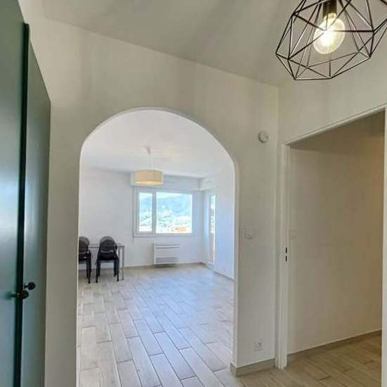 Appartement traversant, très lumineux jouissant d'une belle terrasse donnant sur la montagne et sur la mer. Très bien équipé le logement a été entièrement rénové. Il est situé dans un quartier central à proximité de toutes les commodités et bénéficie d'une place de parking privative, d'un grenier et d'une loggia aménagée en buanderie.