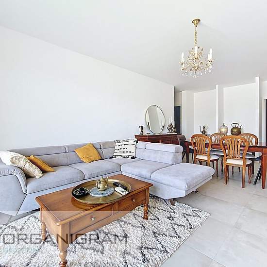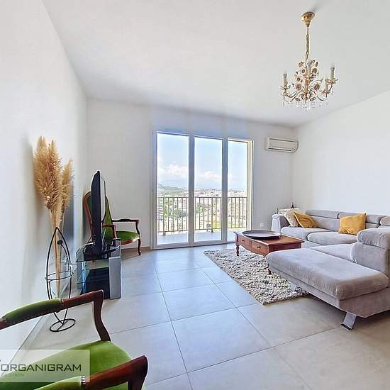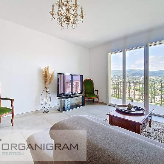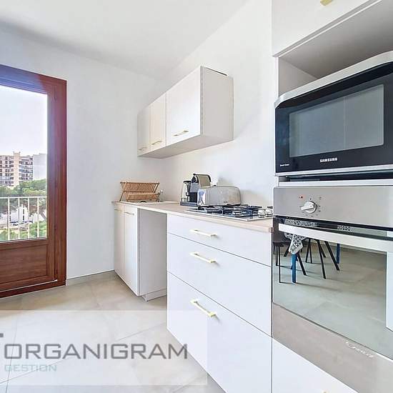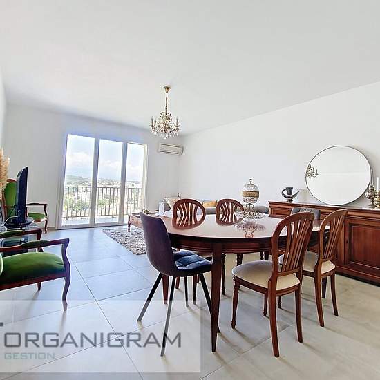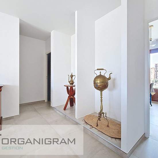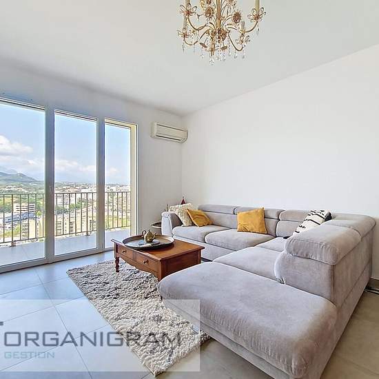 Le cabinet Organigram vous propose à la location un très bel appartement entièrement meublé à l'année de type F3 en très bon état, aménagé avec goût et climatisé. Au septième et dernier étage avec ascenseur d'un immeuble situé proche Rocade. D'une superficie 77.85 m², il est composé comme suit : Une entrée, un grand salon/salle à manger de 30.32m² donnant sur une terrasse vue dégagée, une cuisine aménagée et équipée séparée donnant sur un balcon avec coin buanderie, deux chambres dont une avec placard, une salle d'eau, un WC indépendant. Ren...
