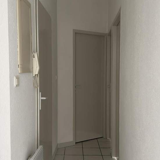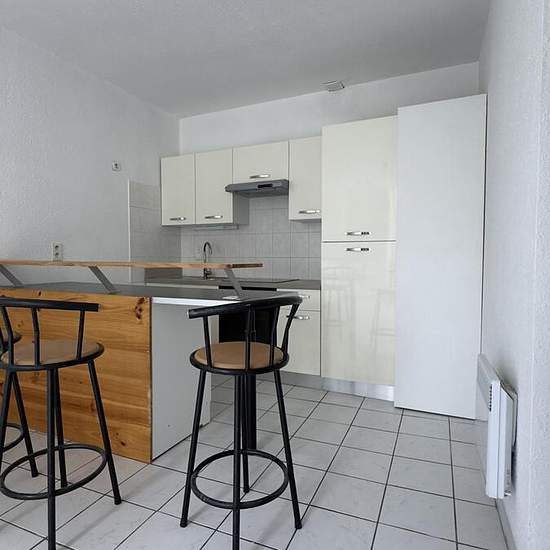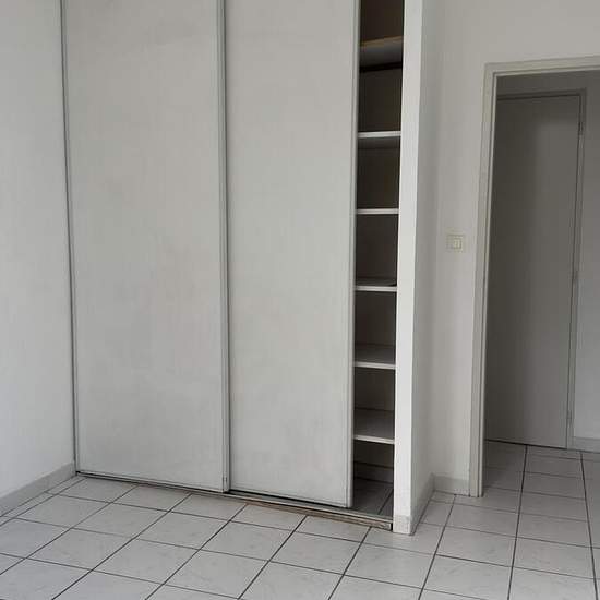 For rent: Type 3 apartment on the 2nd floor, very bright, 56 m²; 2 bedrooms with built-in closets, bathroom, separate WC, fitted kitchen with fridge-freezer, oven, hob and extractor hood, open to the living room, nice high ceilings, breakfast bar to separate, entrance with closet. Air conditioning being installed. Rent €570, charges €40 (waste collection + communal cleaning + communal electricity). Deposit €570 + agency fees €570 — Available. Information on the risks to which this property is exposed is available on the Géorisques website: .
