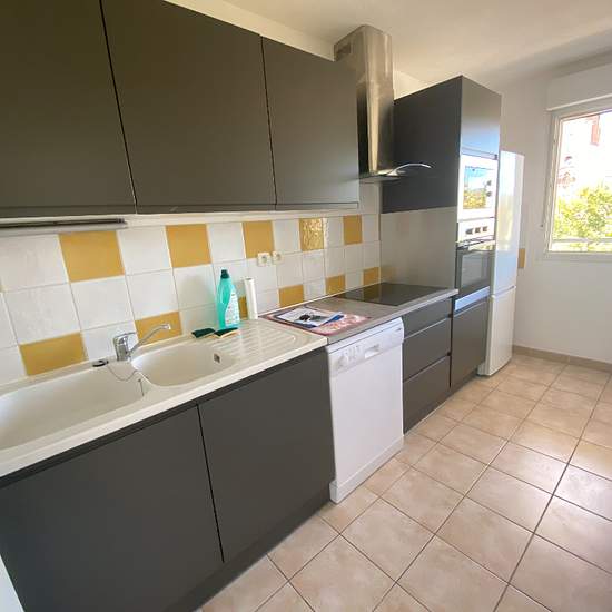 Ales - Dans copropriété sécurisée, Appartement de Type 3 offrant 61 m² avec cuisine équipée neuve, séjour et 2 chambres. Salle de bains avec baignoire. WC indépendants. Double vitrage. Volets roulants. Balcon. Parking privé. Libre à partir du 30 Mars 2026
