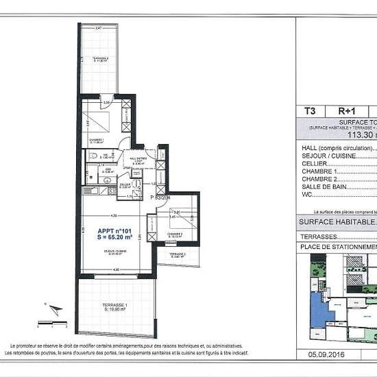 À louer ! Bel appartement T3 avec terrasses et parking. Situé au premier étage d'une résidence paisible, cet appartement de type T3 offre un cadre de vie agréable et lumineux,. Il se compose d'un hall d'entrée spacieux , d'un séjour avec cuisine ouverte de 27,40 m², très lumineux, avec un accès direct à une grande terrasse orientée sud.,d'un cellier de 2,50 m², pratique pour le rangement.,de deux chambres confortables, respectivement de 11,60 m² et 10,10 m²,d'une salle de bain moderne et d'un wc séparé. À l'extérieur, vous bénéficierez de de...