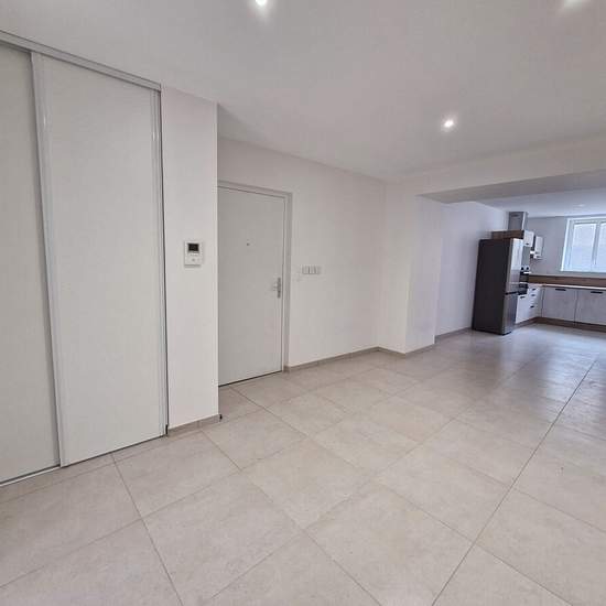 Bel appartement T3 en duplex de 119.51 m² situé au rez de chaussée d'un bâtisse entièrement rénovée, située à la sortie Nord d'Ampuis - Rue de la Félodière. Une grande pièce de vie donnant sur cour intérieure fermée, cuisine ouverte équipée (Four, plaque de cuisson, lave vaisselle, hotte, frigo/congélateur). Une buanderie et toilettes séparés. A l'étage, 2 chambres lumineuses avec placard mural, une salle de bains avec des toilettes. Terrasse privative au 1er étage. Chauffage par Pompe à chaleur + sol rafraichissant. Local vélos. Disponible ...