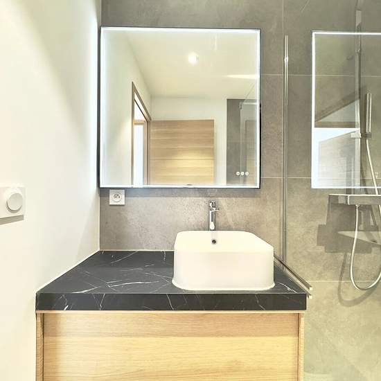This beautiful three-room apartment, located on the fourth floor of a residence in the heart of Annecy, just a few metres from the train station, faces southwest and offers unobstructed views. Fully renovated with high-end finishes, it provides a comfortable and bright living environment. The entrance has a built-in closet and a separate toilet. The living area, particularly bright, combines a lounge, a dining area and an open-plan kitchen fully equipped with built-in appliances including an oven, microwave, hob, fridge-freezer, washing mach...