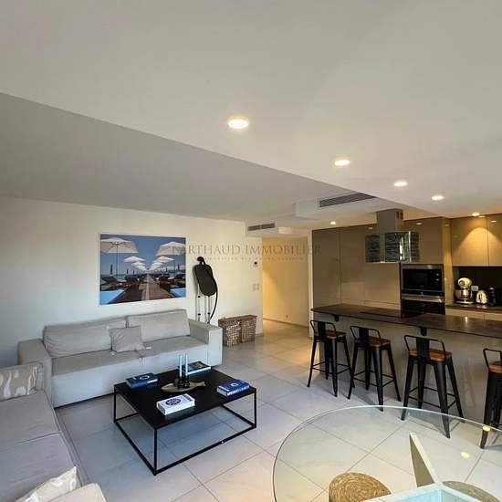 À la location longue durée. Nous vous proposons un appartement de standing de 69 m², situé au 2ème étage avec ascenseur, composé d'un séjour avec cuisine ouverte entièrement équipée, de deux chambres, d'une salle de bain avec WC, ainsi que d'un second WC indépendant. La résidence CENTER BAY bénéficie d'un emplacement privilégié, en plein cœur de Juan-les-Pins, à proximité immédiate des commerces, des restaurants et du bord de mer, situé à seulement 40 mètres. Un bien offrant confort, fonctionnalité et une localisation de premier choix. Loyer...