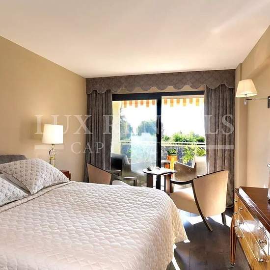 Magnifique appartement aux prestations luxueuses, rénové en 2018, comprenant 2 chambres avec salle de bains en suite et dressing, grand séjour ouvrant sur terrasse avec vue mer, cuisine toute équipée avec salle à manger ouvrant sur un jardin privatif. Buanderie, dressing supplémentaire. Garage.