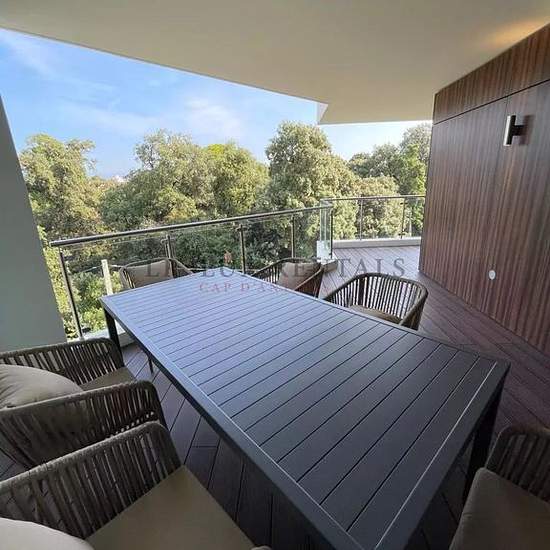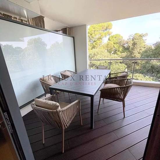 Appartement 3 pièces de 75m² idéalement située dans magnifique complexe de prestige, au calme absolu à 5 minutes à pied des plages Spa, piscine intérieure et extérieure , la salle de sport et courts de tennis, services de conciergerie et de sécurité font de cette résidence qu'elle soit unique. Il se compose : un séjour avec une cuisine ouverte, de deux chambres avec leur salle de douches, un WC indépendant et un espace buanderie. Climatisation, internet. 1 parking DISPONIBLE D'OCTOBRE A FIN MAI