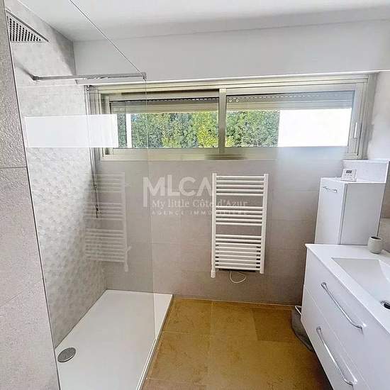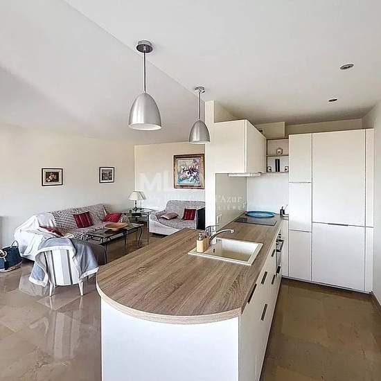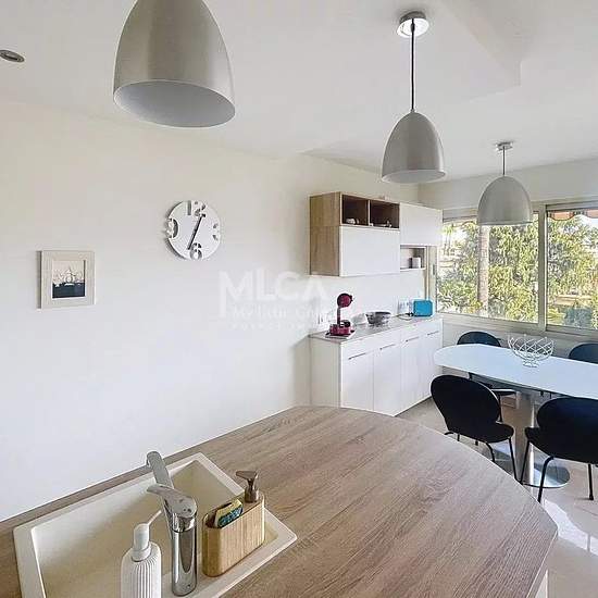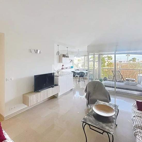A louer pour les vacances, dans résidence de standing avec gardienne, à 250 mètres des commerces et de la plage du Ponteil, spacieux 3 pièces refait à neuf Entré, séjour climatisé avec cuisine équipée ouverte donnant sur loggia, 1 chambre avec salle de douches en suite, 1 chambre climatisée avec salle de bains en suite, internet et garage Couchages : 4 personnes Prix moyenne saison: 1 375 € / semaine Prix haute saison; 1 500 € /semaine
