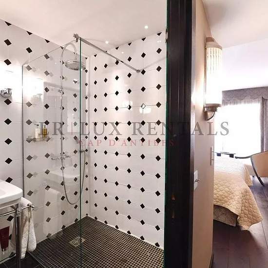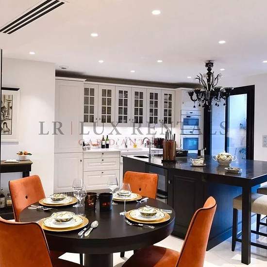 Magnifique appartement aux prestations luxueuses, rénové en 2018, comprenant 2 chambres avec salle de bains en suite et dressing, grand séjour ouvrant sur terrasse avec vue mer, cuisine toute équipée avec salle à manger ouvrant sur un jardin privatif. Buanderie, dressing supplémentaire. Garage.