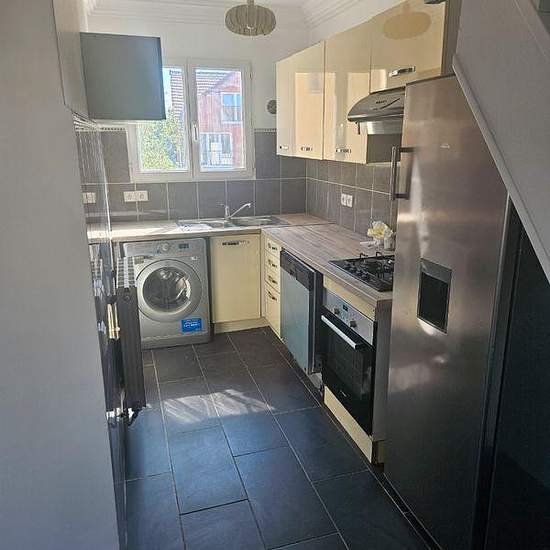 Appartement de 64 m² à louer sur Argenteuil Appartement de 64 m² en duplex au 1er étage d'une maison individuelle comportant 2 appartements (RDC et 1er étage). L' appartement est en très bon état il a été refait et est situé dans un quartier pavillonnaire très calme. Il est situé à Argenteuil (limite Bezons), à 40 minutes de la Défense et 15mn de la gare d'Argenteuil en transports (bus 4 / 9/272). Le logement est vacant. L'appartement se compose : - d'une salle de bain avec baignoire / WC à l étage. - un WC supplémentaire - un grand salon sé...
