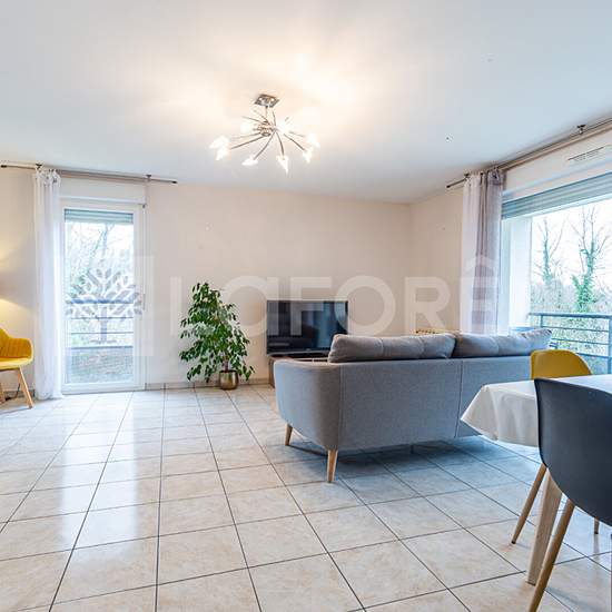 ANNECY SECTEUR FIER - APPARTEMENT T3 - MEUBLÉ - 1ER ÉTAGE - TERRASSE 13 m² - GARAGE + POSSIBILITÉ D'UN GARAGE EN SUS Appartement soumis à l'assurance des loyers impayés (pas de garants possibles sauf pour les étudiants). Revenus minimum exigés : 4380 euros net par mois. Situé au premier étage d'une copropriété récente de 2009, dans un secteur calme proche du Fier, ce bel appartement meublé offre un cadre de vie agréable et reposant. L'entrée dessert deux chambres chacune munie de placards intégrés, ainsi qu'un couloir également équipé de ran...