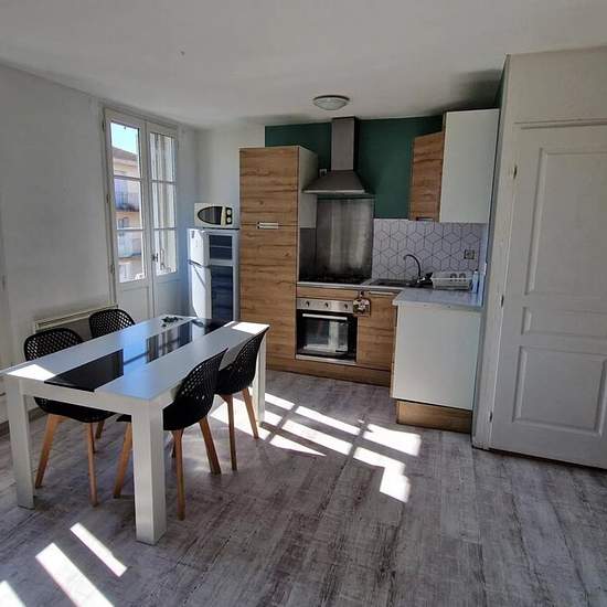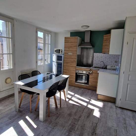 AUCH centre ville Appartement meublé Type 3 Environ 52m² habitables Pièce à vivre avec cuisine équipée Deux chambres avec placards Salle d'eau avec machine à laver le linge Wc indépendant Chauffage électrique - Double vitrage Très lumineux! Possibilité de louer un garage en plus.