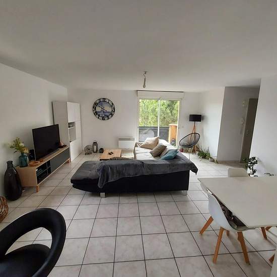 Agréable appartement Type 3 Environ 77m² habitables Grande entrée avec placard, agréable pièce de vie avec cuisine équipée ouverte, balcon, 2 chambres avec placards, une salle de bains, un wc indépendant. Grand garage