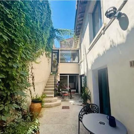 INTRA MUROS entre le Grenier à Sel et le Théâtre des Lucioles. 8 rue du rempart saint Lazare. Dans une maison avec cour végétalisée disposant de tables pour dîner dehors, je loue le RDC qui fait 75 m2. Il se compose de deux appartements mitoyens : - Un studio avec salle d’eau + wc, du rangement , une cuisine équipée avec lave vaisselle, lave linge ( grand étendoir extérieur) ainsi que four, frigo et plaques à induction, cafetière, bouilloire et grille pain. Pour le couchage : un lit deux places et un canapé lit. - un T2 avec une chambre s...