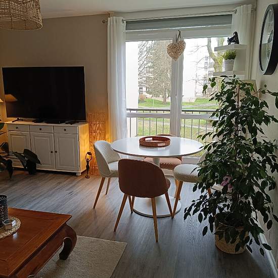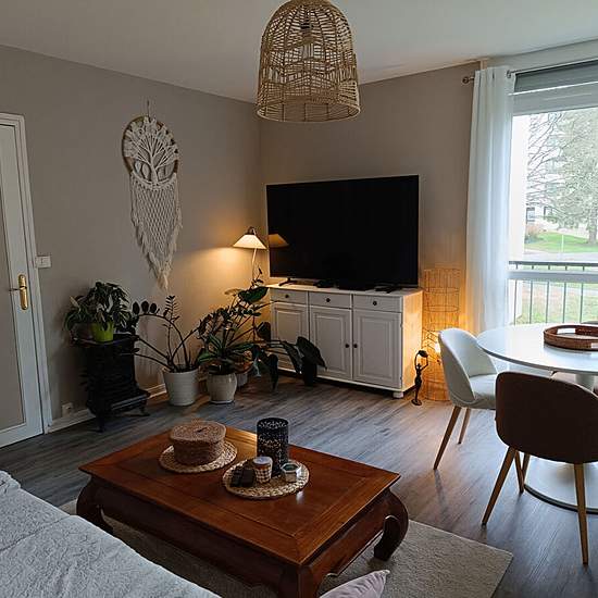 BUTTE MONTCEAU, apartment on the first floor, 60 m², comprising: entrance with storage, living room opening onto a balcony, fitted kitchen, storage cupboards, two bedrooms, shower room and WC. AVAILABLE FROM 23 APRIL 2026 Communal heating Parking and cellar