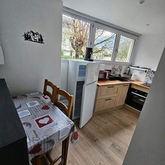 À louer à l’année, studio fonctionnel et lumineux situé au rez-de-chaussée d’une résidence calme à Bagnères-de-Luchon. Idéal pour un couple ou un curiste souhaitant profiter d’un pied-à-terre pratique et confortable. Le logement comprend : Pièce principale avec canapé convertible de qualité et table basse convertible/rehaussable, parfaite pour se détendre ou dîner Cuisine aménagée et équipée : plaques, four, micro-ondes, machine à café, vaisselle Salle de bain avec douche et lave-linge Local privé pour skis ou matériel sportif Atouts : Parki...