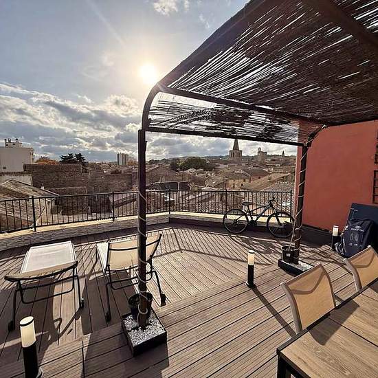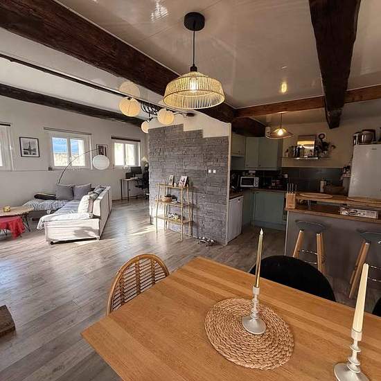 Disponible début mars, Bonjour, Je propose à la location ce bel appartement T3 de 95 m², comprenant un grand séjour lumineux de 40 m² ainsi qu’un toit-terrasse de 54 m² offrant une vue dégagée sur le vieux Bagnols et ses environs. Situé au 3ᵉ étage sans ascenseur, boulevard Lacombe, l’appartement se compose de deux chambres, d’une salle d’eau, de deux WC, d’une cuisine équipée avec petit congélateur, ainsi que de nombreux espaces confortables. Il est équipé de radiateurs dans les chambres, d’une climatisation réversible dans le salon et d’un...