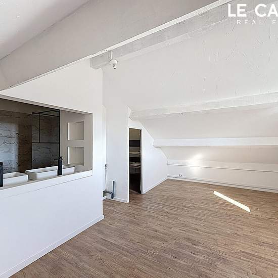 Bandol Duplex rénové, entre horizon et Méditerranée Certains lieux imposent immédiatement une sensation particulière. Ce duplex en est l’exemple parfait. Situé à Bandol, à deux pas de la gare, des commerces et à seulement dix minutes de marche de la mer, il bénéficie d’un accès direct à toutes les commodités. Dès la porte franchie, on découvre un intérieur intégralement rénové, travaillé avec soin et exigence. Ici, tout a été pensé pour créer un véritable espace de vie, bien loin d’un simple lieu d’habitation. L’entrée débouche sur une pièce...