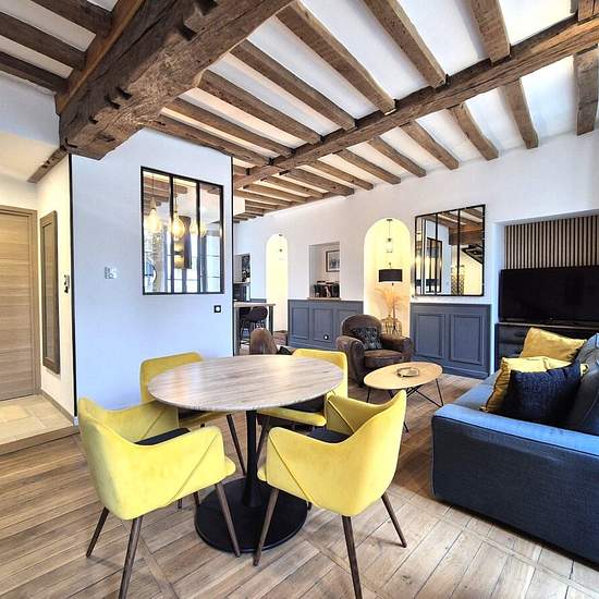 Maloé Immobilier vous propose à BEAUNE, au premier étage d'un immeuble historique situé en centre ville, un bel appartement de type 3 présentant des prestations rares. Cet appartement, entièrement meublé avec goût, est composé d'une entrée desservant une lumineuse et spacieuse pièce à vivre avec une belle cuisine aménagée et équipée (four, plaque de cuisson, hotte, lave-vaisselle, réfrigérateur-congélateur américain, micro-onde et cave à vin) et un WC. L'étage est composé d'un dégagement desservant deux belles chambres avec climatisation et ...
