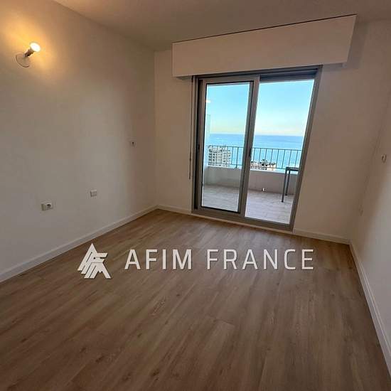 Beausoleil, Guynemer neighbourhood. Nice furnished three-room apartment in a quiet, secure residence. It comprises an entrance with an equipped open kitchen, a bright living room with a sea-view terrace, two bedrooms (one with a sea-view terrace), and a shower room. Reversible air conditioning. One garage in the basement. Show phone number.