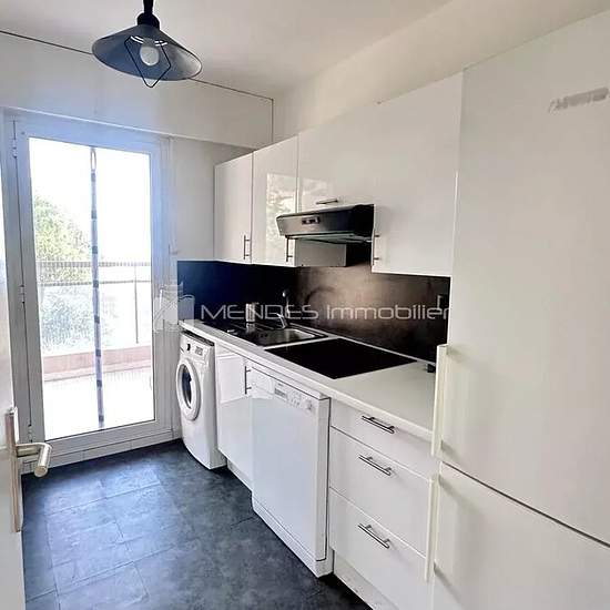 In a beautiful residence, a 3-room, 59 m² apartment on the 6th floor with a terrace and sea view. This apartment comprises a living room, two bedrooms, a bathroom and a shower room, built-in cupboards, and a separate fitted kitchen. A garage completes the property. Available immediately. Information on the risks to which this property is exposed is available on the Géorisques website: