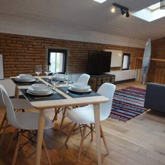 Aménagé dans un ancien bâtiment viticole, "Le Pigeonnier" est un appartement de 83 m2 sur 2 niveaux. En rez-de-jardin, une entrée avec une grande penderie et un coin buanderie. A l'étage, un grand séjour de 50 m2 avec décoration style loft, cuisine entièrement équipée et 2 belles chambres disposant chacune d'une salle de bains. 1 place de parking aérien sécurisé dans la proporiété. Accès à une terrasse permettant de déjeuner à l'extérieur et de profiter des belles journées ensoleillées.