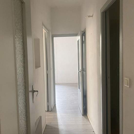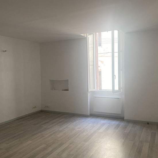 Bel appartement situé au 1er étage d'une copropriété de 2 étages, comprenant un grand séjour avec un coin cuisine (cuisine meublée et partiellement équipée : plaque vitrocéramique et hotte), un couloir desservant une salle d'eau, un WC, deux chambres dont une donnant sur un balcon. Un garage fermé se trouve au rez-de-chaussée. Chauffage électrique. Double vitrage. Classe énergétique C. Loyer charges comprises : 495 € (les charges s'élèvent à 25 € et correspondent aux ordures ménagères et l'électricité des communs). Libre début février 2026. ...